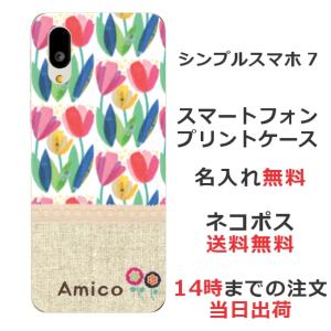 - シンプルスマホ7 A404SH らふら 名入れ スマホケース 北欧デザイン チューリップ