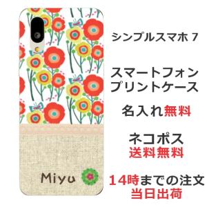 - シンプルスマホ7 A404SH らふら 名入れ スマホケース 北欧デザイン フラワー オレンジ