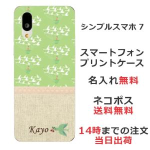 - シンプルスマホ7 A404SH らふら 名入れ スマホケース 北欧デザイン ホワイト バード
