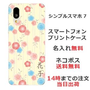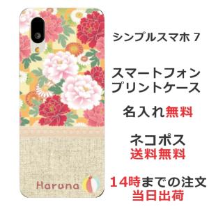 - シンプルスマホ7 A404SH らふら 名入れ スマホケース 和柄 花 撫子