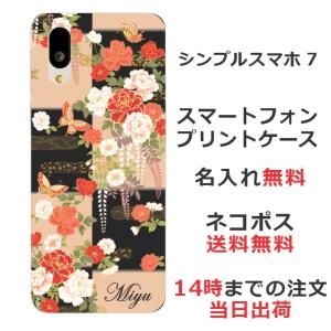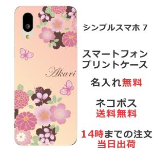 - シンプルスマホ7 A404SH らふら 名入れ スマホケース 和柄 花 春蝶花