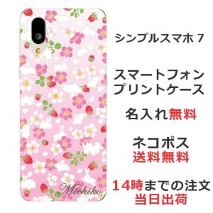 - シンプルスマホ7 A404SH らふら 名入れ スマホケース 和柄 花 桜苺兎