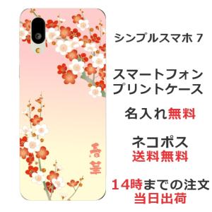- シンプルスマホ7 A404SH らふら 名入れ スマホケース 和柄 花 梅