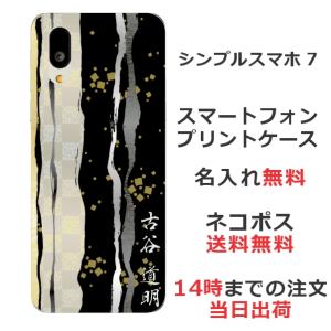 - シンプルスマホ7 A404SH らふら 名入れ スマホケース 和柄 花 モダン漆黒金箔