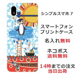 - シンプルスマホ7 A404SH らふら 名入れ スマホケース ペンギン天国