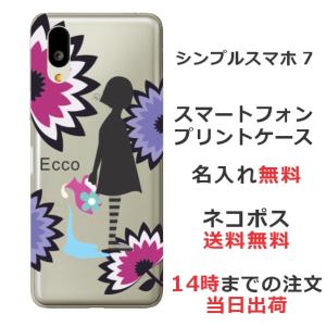 - シンプルスマホ7 A404SH らふら 名入れ スマホケース モダン花 少女