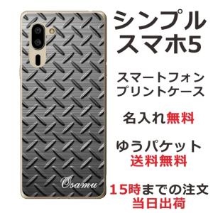 - シンプルスマホ5 ケース A001sh カバー らふら 名入れ メタル ブラック