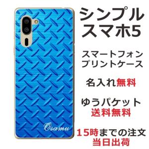 - シンプルスマホ5 ケース A001sh カバー らふら 名入れ メタル ブルー