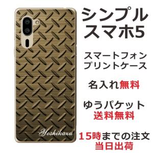 - シンプルスマホ5 ケース A001sh カバー らふら 名入れ メタル ゴールド