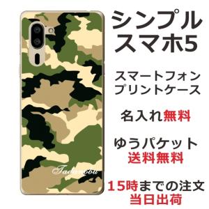 - シンプルスマホ5 ケース A001sh カバー らふら 名入れ 迷彩 グリーン