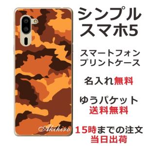 - シンプルスマホ5 ケース A001sh カバー らふら 名入れ 迷彩 オレンジ