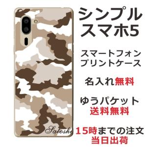 - シンプルスマホ5 ケース A001sh カバー らふら 名入れ 迷彩 ブラウン