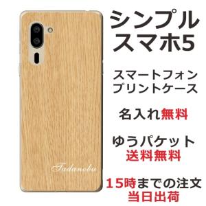 - シンプルスマホ5 ケース A001sh カバー らふら 名入れ ウッドスタイル