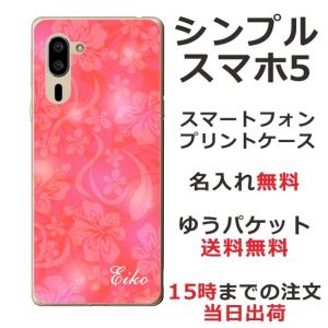 - シンプルスマホ5 ケース A001sh カバー らふら 名入れ ハイビスカスピンク