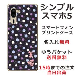 - シンプルスマホ5 ケース A001sh カバー らふら 名入れ モダンドット ネイビー