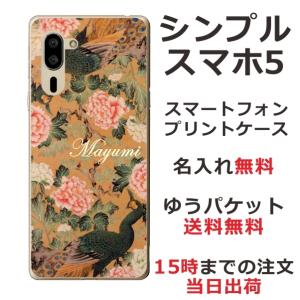 - シンプルスマホ5 ケース A001sh カバー らふら 名入れ 孔雀牡丹