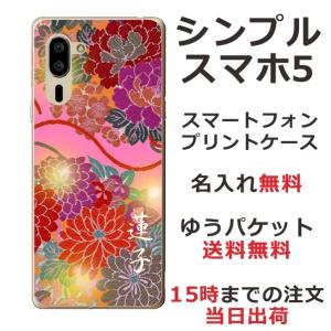 - シンプルスマホ5 ケース A001sh カバー らふら 名入れ 和花ピンク
