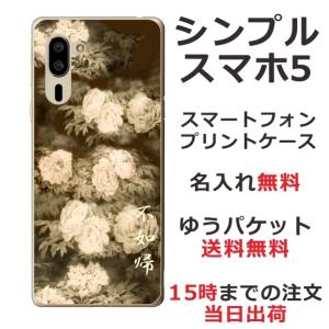 - シンプルスマホ5 ケース A001sh カバー らふら 名入れ セピア牡丹