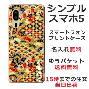 - シンプルスマホ5 ケース A001sh カバー らふら 名入れ 千代紙柄ゴールド
