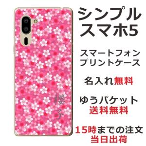 - シンプルスマホ5 ケース A001sh カバー らふら 名入れ 桜ピンク