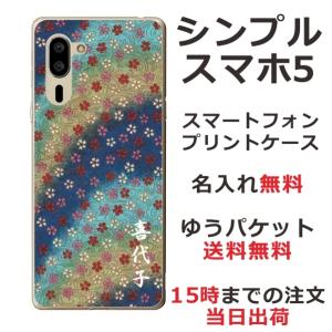 - シンプルスマホ5 ケース A001sh カバー らふら 名入れ 和小花 ブルーグラデ