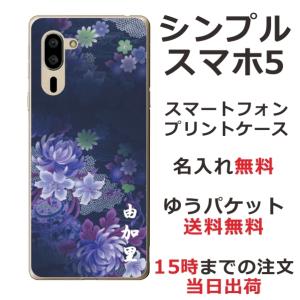 - シンプルスマホ5 ケース A001sh カバー らふら 名入れ 和花 青紫グラデ