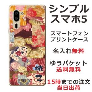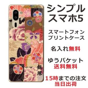 - シンプルスマホ5 ケース A001sh カバー らふら 名入れ 和花パッチワーク