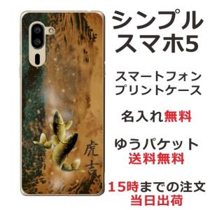 - シンプルスマホ5 ケース A001sh カバー らふら 名入れ 黄金双鯉