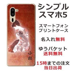 - シンプルスマホ5 ケース A001sh カバー らふら 名入れ 艶女昇鯉