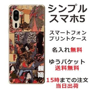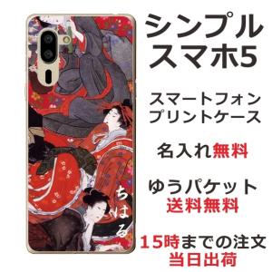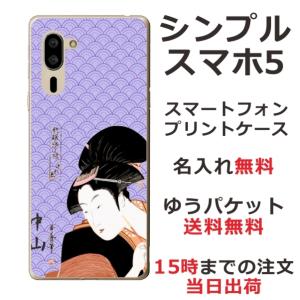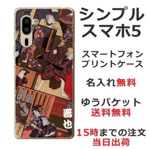- シンプルスマホ5 ケース A001sh カバー らふら 名入れ 浮世絵