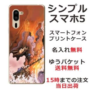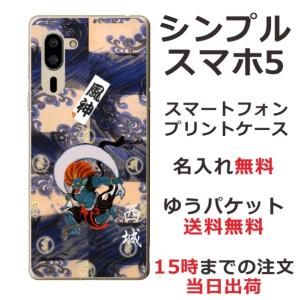 - シンプルスマホ5 ケース A001sh カバー らふら 名入れ 風神雷神