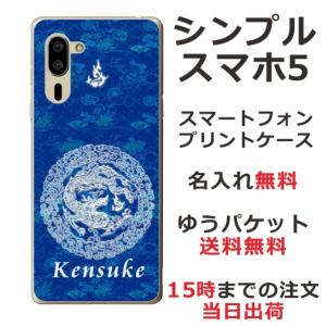 - シンプルスマホ5 ケース A001sh カバー らふら 名入れ 円龍青