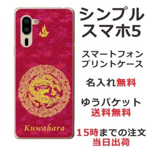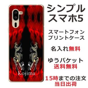 - シンプルスマホ5 ケース A001sh カバー らふら 名入れ 炎闇双龍