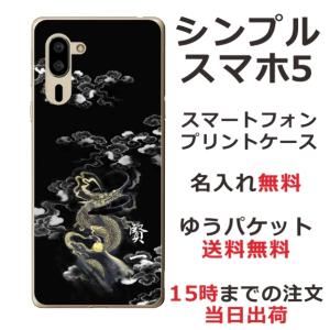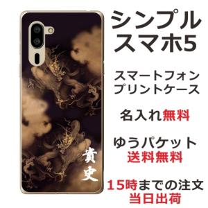 - シンプルスマホ5 ケース A001sh カバー らふら 名入れ 水墨双龍