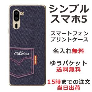 - シンプルスマホ5 ケース A001sh カバー らふら 名入れ デニム