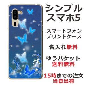- シンプルスマホ5 ケース A001sh カバー らふら 名入れ 蒼波光蝶