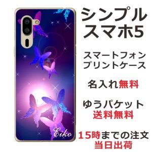 - シンプルスマホ5 ケース A001sh カバー らふら 名入れ 紫蝶々
