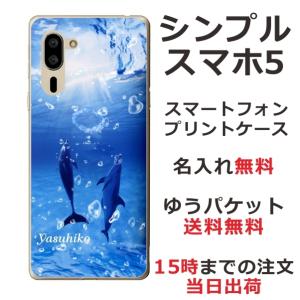 - シンプルスマホ5 ケース A001sh カバー らふら 名入れ ドルフィンジャンプ