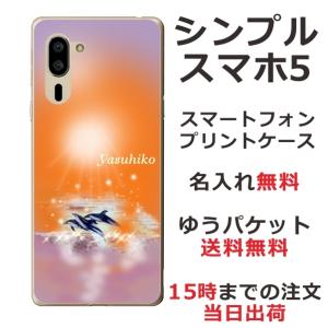 - シンプルスマホ5 ケース A001sh カバー らふら 名入れ ドルフィンサンセット