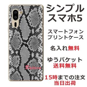 - シンプルスマホ5 ケース A001sh カバー らふら 名入れ へび柄ブラック