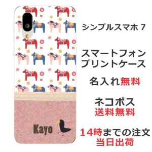 - シンプルスマホ7 A404SH らふら 名入れ スマホケース 北欧デザイン 木馬