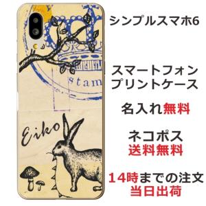 - シンプルスマホ6 ケース A201SH カバー らふら 名入れ アンティークうさぎ