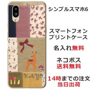 - シンプルスマホ6 ケース A201SH カバー らふら 名入れ パッチワークバンビ
