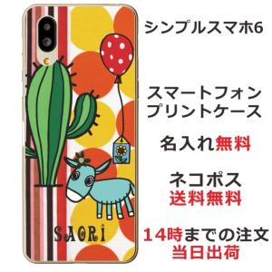 - シンプルスマホ6 ケース A201SH カバー らふら 名入れ ロバ サボテン