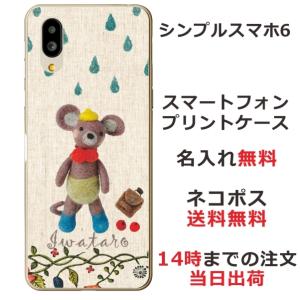 - シンプルスマホ6 ケース A201SH カバー らふら 名入れ ネズミ お散歩