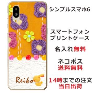 - シンプルスマホ6 ケース A201SH カバー らふら 名入れ キルトフラワーオレンジ