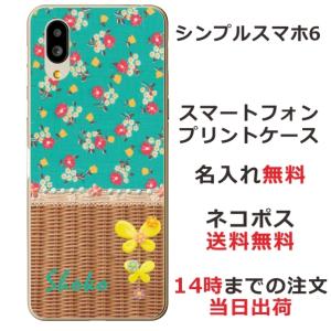 - シンプルスマホ6 ケース A201SH カバー らふら 名入れ フラワー 籐