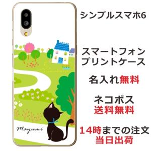 - シンプルスマホ6 ケース A201SH カバー らふら 名入れ 黒猫 お散歩