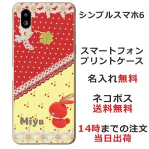 - シンプルスマホ6 ケース A201SH カバー らふら 名入れ 赤ウサギ 白い鳥