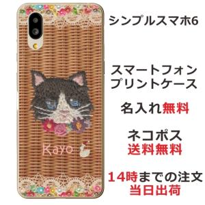- シンプルスマホ6 ケース A201SH カバー らふら 名入れ 籐猫黒